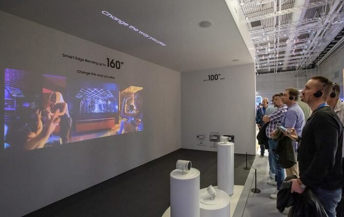 Cuando se activa Smart Edge Blending, el smartphone conectado interactuará con los proyectores portátiles The Freestyle en tiempo real. Los procesos de sincronización y ajuste de contenidos se realizan automáticamente a través de la comunicación entre los dispositivos. “La alineación de la pantalla se puede realizar fácilmente utilizando la guía SmartThings cuando un usuario captura una imagen de la pantalla proyectada. El algoritmo analítico analizará la extensión y superposición de los estándares en ocho puntos principales en la pantalla de configuración y luego ajustará la proyección en cada dispositivo”, explicó.