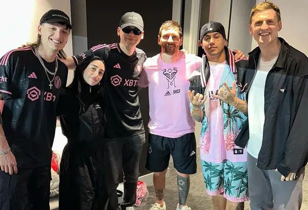Previo al comienzo del cotejo, el delantero recibió la visita de los artistas argentinos Bizarrap, Duki, Nicki Nicole y Louta, y el mexicano Peso Pluma en el estadio ubicado en Florida.