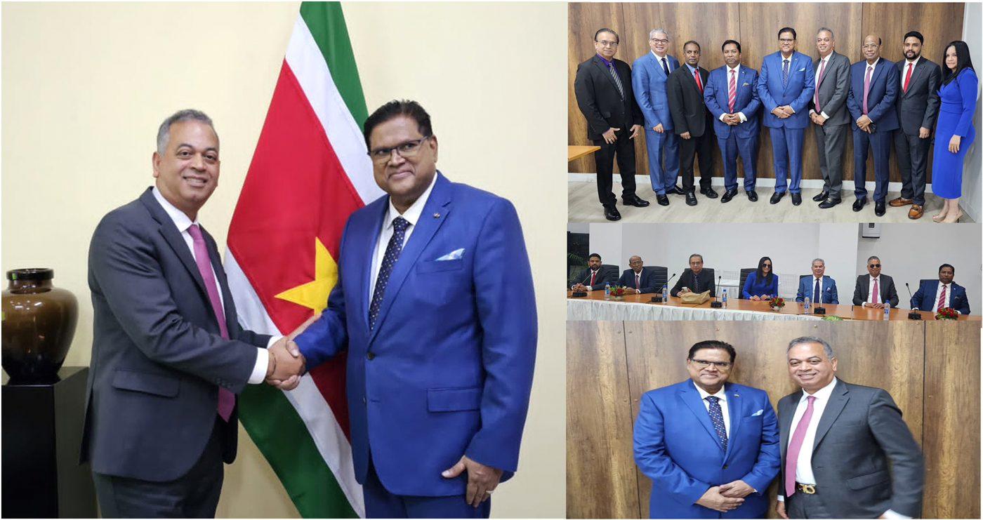 NUEVA YORK._ Una representación de empresarios dominicanos radicados en Nueva York en cabezada por el ex diputado de ultramar Rubén Luna, el ex senador por Montecristi y su esposa, Jazmín Vieluf, viajaron a Surinam donde se reunieron con el presidente de ese país, Chandrikapersad Santokhi (Chan) para tratar una amplia agenda de negocios que beneficiará a los dominicanos en el exterior y la República Dominicana.