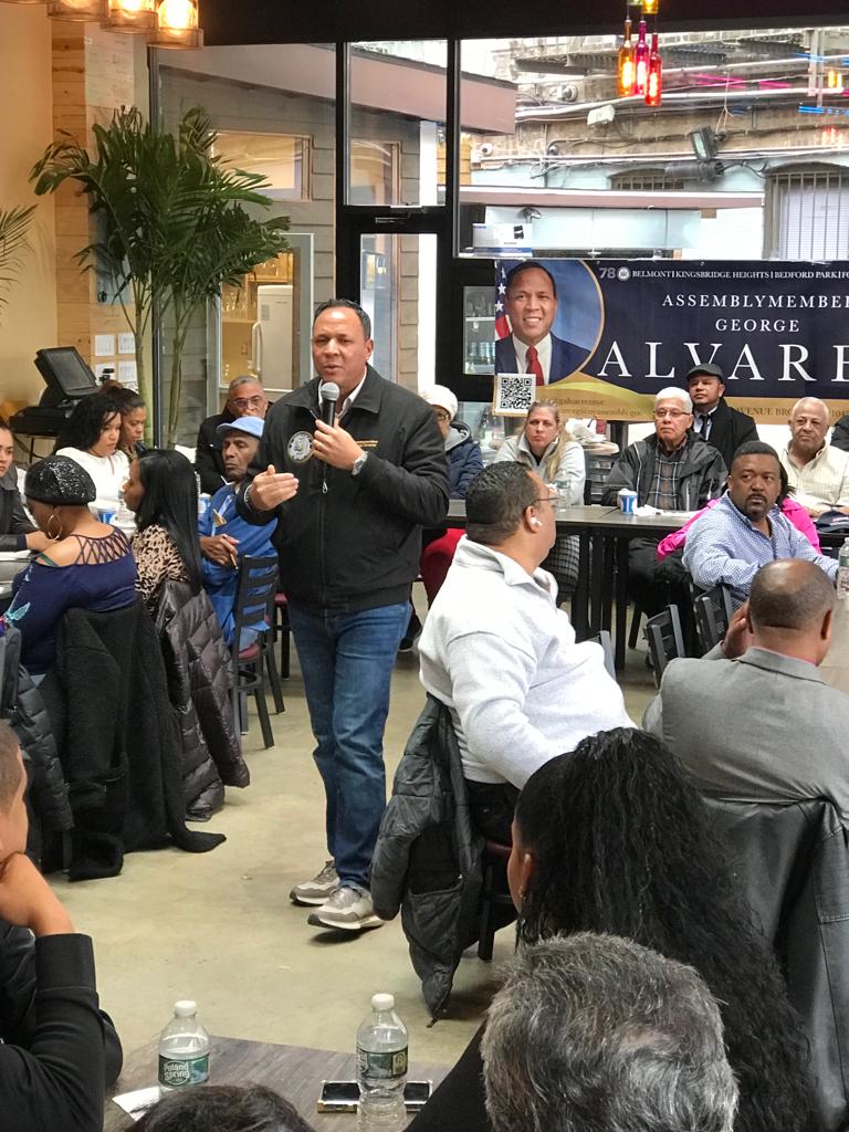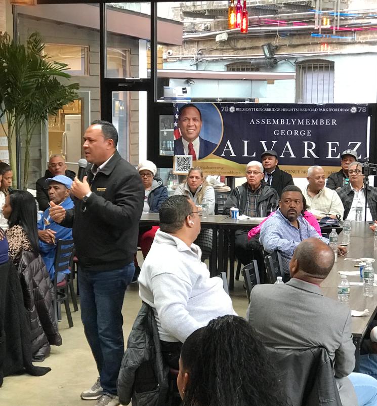 El BRONX; NUEVA YORK. _El asambleísta George Álvarez, quien representa el distrito 78 ante la legislatura estatal, realizó un encuentro desayuno, como parte de una serie de conversaciones con los habitantes de los diferentes sectores que conforman su demarcación.