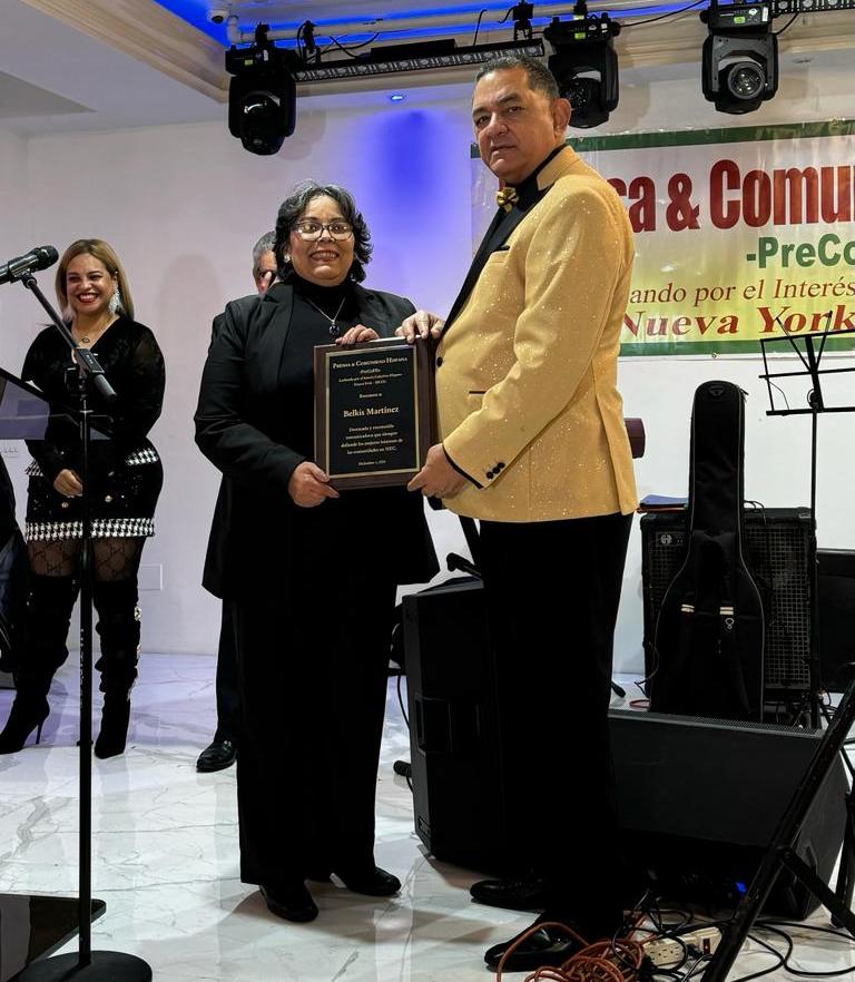 Nueva York; EUA. _ La destacada periodista dominicana radicada en esta ciudad , Belkis Martínez, fue reconocida por por Premios Latinos, que preside Felix Jerez y Prensa y Comunidad bajo la dirección de Ramón Mercedes por su trayectoria y aportes al ejercicio de la comunicación en los Estados Unidos.