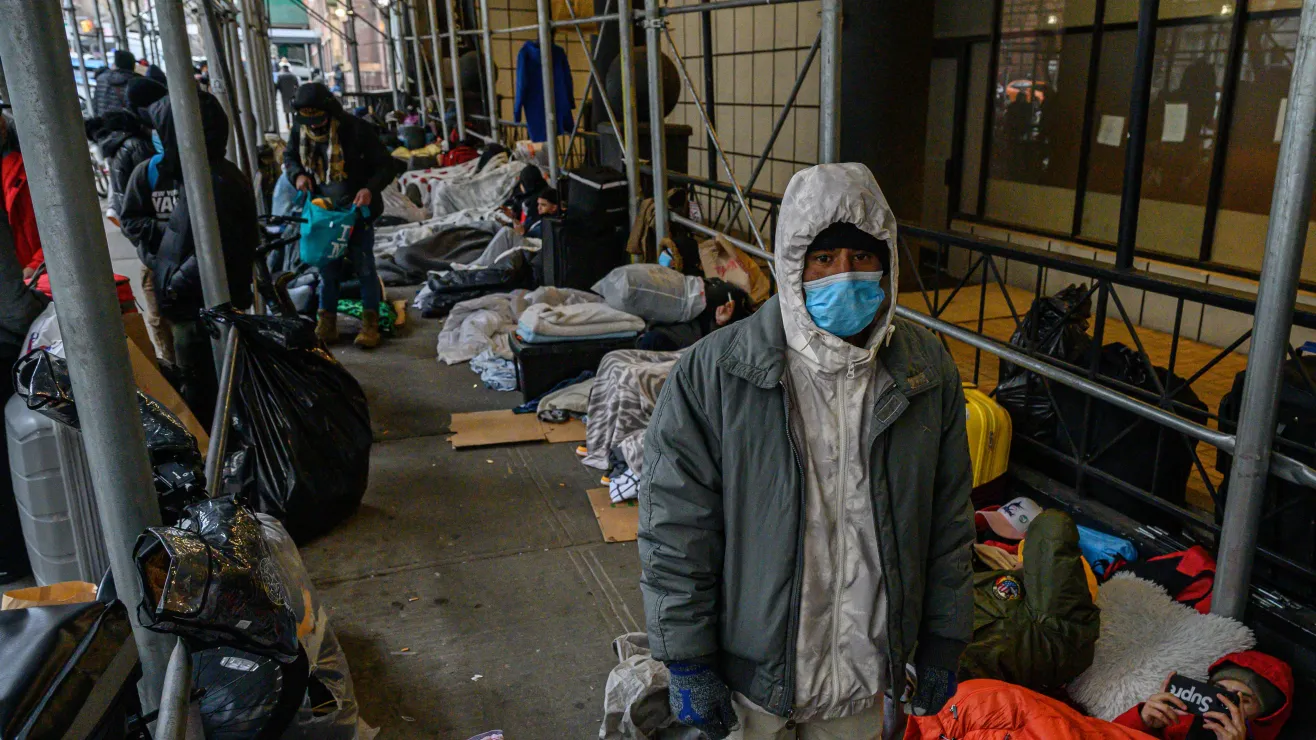 Desde la primavera de 2022 más de 139,000 solicitantes de asilo han llegado a la ciudad de Nueva York mayormente hispanos enviados en buses desde Texas, en medio de una batalla política nacional entre demócratas y republicanos. De ellos alrededor de 66,000 permanecen en el sobrecargado sistema de refugios de la ciudad, según recuentos del gobierno local. La población del sistema de refugios pasó de menos de 50,000 en julio de 2022 a alrededor de 120,000 en noviembre.