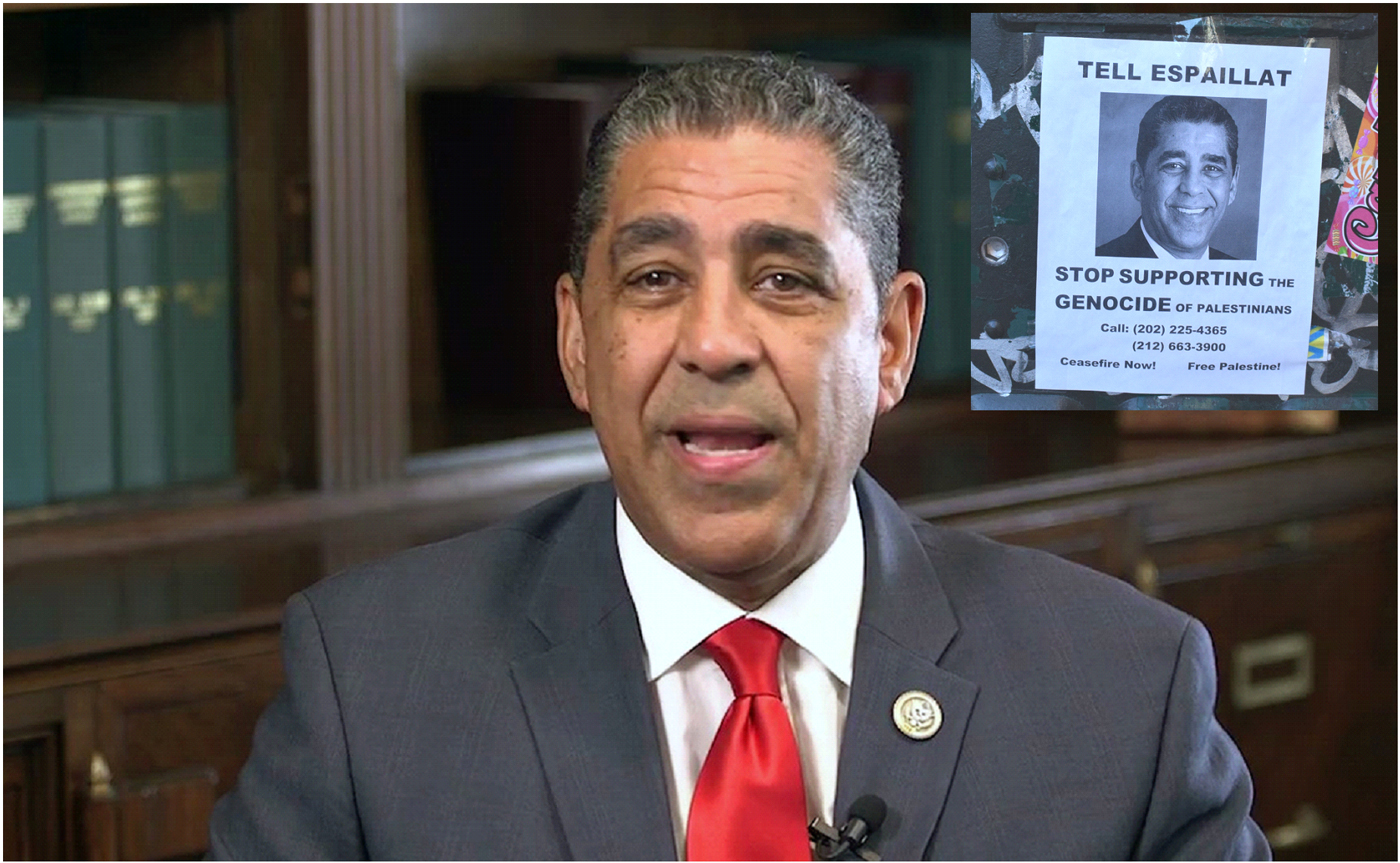 La campaña contra el único legislador federal dominicano en la Cámara de Representantes incluye volantes distribuidos en áreas estratégicas del Alto Manhattan llamando a las comunidades a pedirle a Espaillat que pare el apoyo al genocidio de Israel contra Palestina.