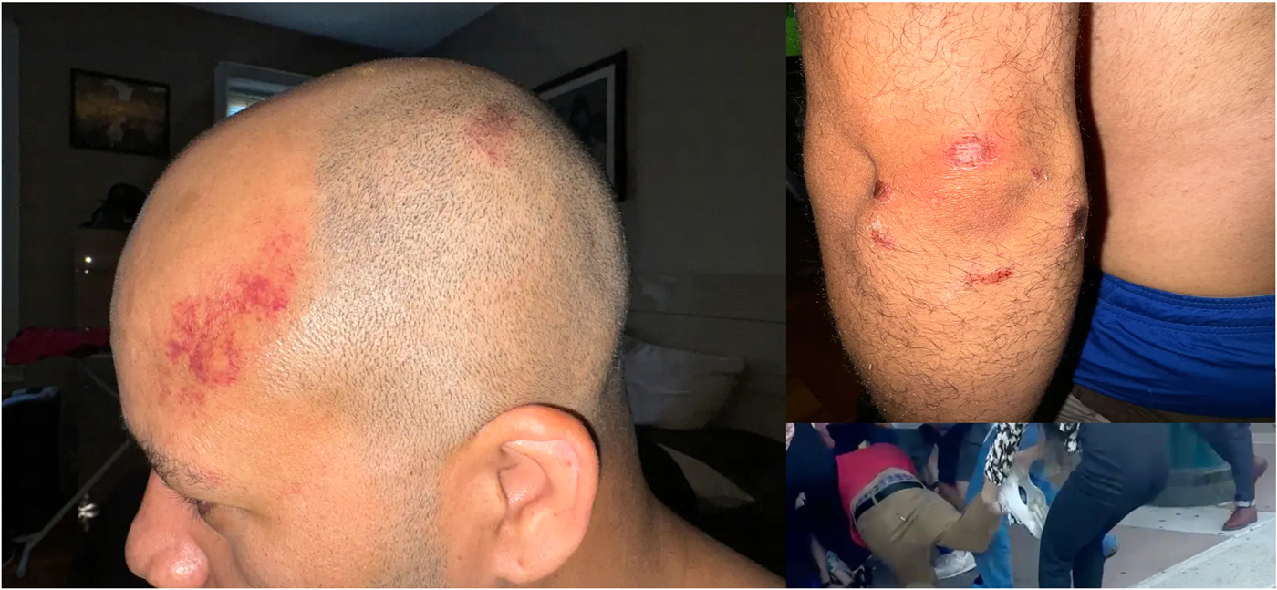 Los agredidos entregaron fotos de las lesiones que sufrieron por las que ambos tuvieron que ser llevados a hospitales como el caso de Johan, que sufrió un golpe contundente en la cabeza.