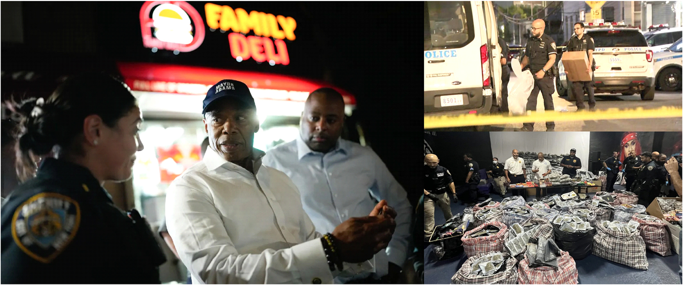 NUEVA YORK._ En una sorpresiva aparición, el alcalde de la ciudad, Eric Adamas dirigió la Operación “Candado para Proteger” en la junto a policías locales, oficiales de la oficina del sheriff, inspectores municipales y personal de otras agencias, confiscaron Cannabis (marihuana) ilegal valoradas en 10 millones de dólares en dos negocios del vecindario Throggs Neck en El Bronx.