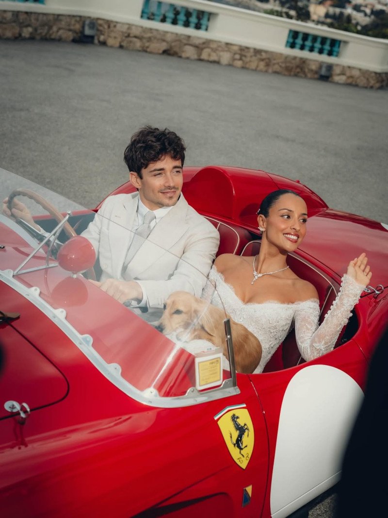 Leclerc, de 28 años, y Saint Mleux, de 22, eligieron una ceremonia civil privada en Mónaco, rodeados solo de sus seres queridos. El momento más memorable fue cuando la pareja paseó por las calles de Mónaco en un Ferrari 250 Testa Rossa de 1957, un automóvil legendario valorado en 30 millones de euros. Este detalle no fue casual: simboliza el vínculo indisoluble entre Leclerc y Ferrari, la escudería con la que busca recuperar el título mundial en 2026.