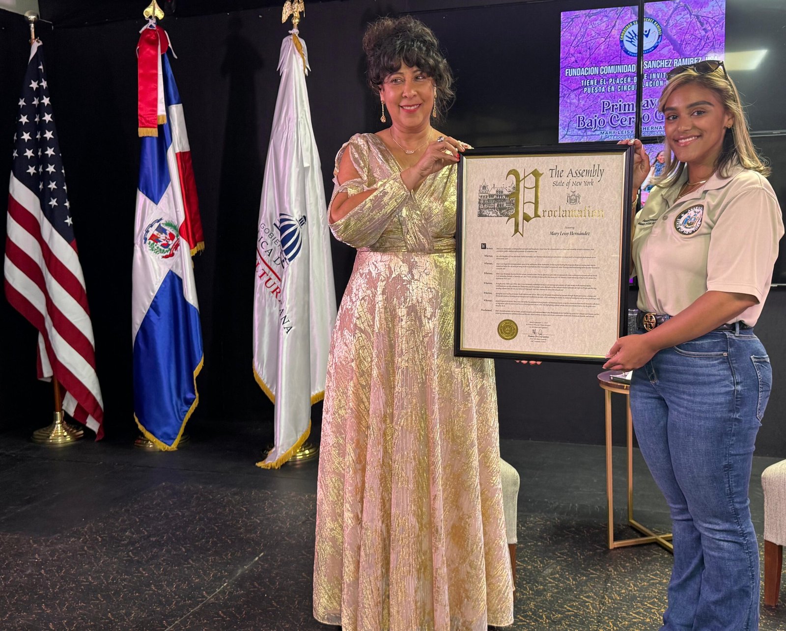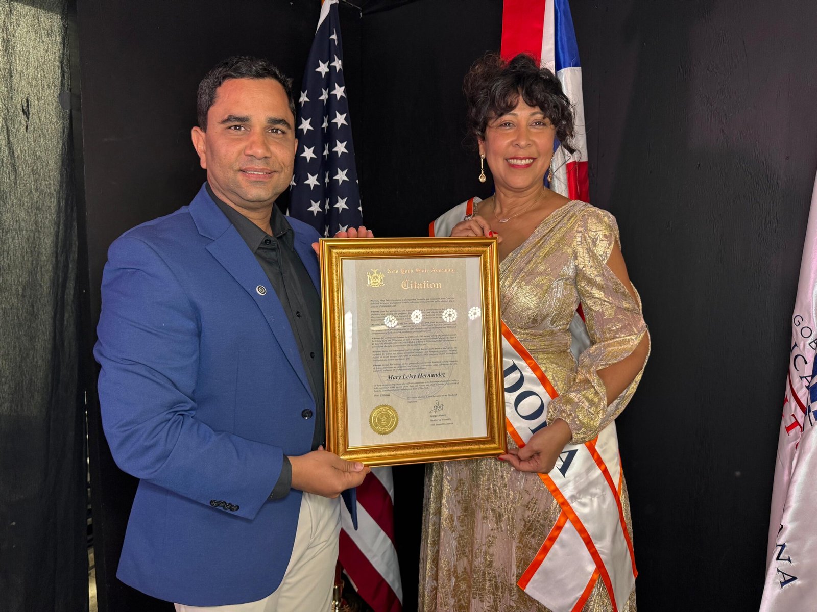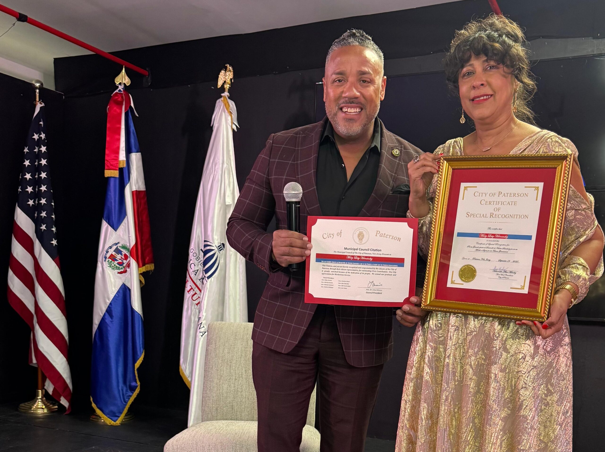 Uno de los momentos más emotivos de la velada fue el reconocimiento especial otorgado por la Asamblea Estatal de Nueva York, de la mano de los legisladores George Álvarez y Manny De los Santos, así como por el presidente del Concejo Municipal de la ciudad de Paterson, Alex Méndez, quienes valoraron el aporte cultural y comunitario de la autora.