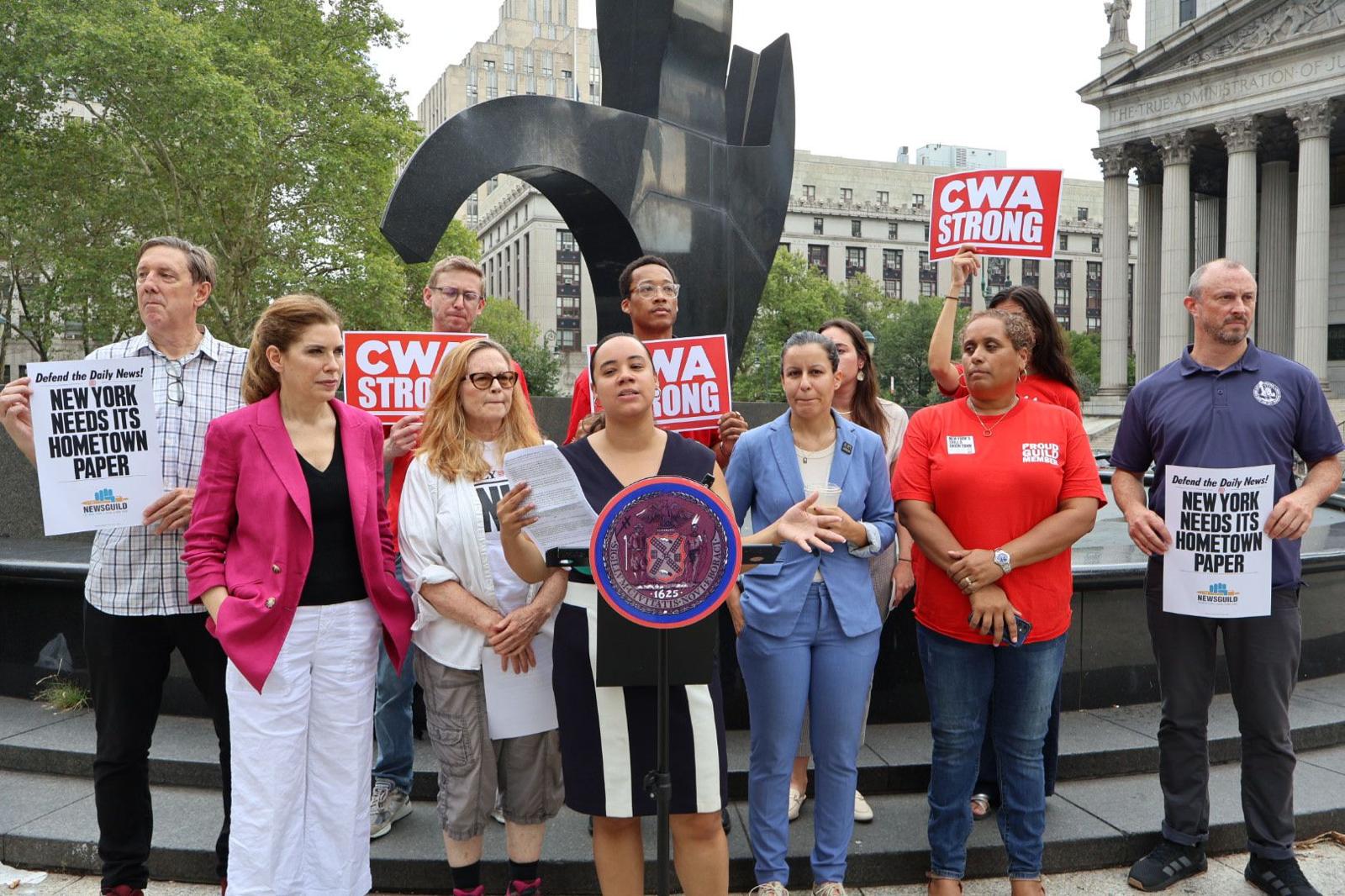 Nueva York. — La concejal de la ciudad de Nueva York, la domincana Carmen De La Rosa, presentó la resolución denominada “Too Tough to Die” en apoyo a los periodistas sindicalizados del “Daily News” , quienes están luchando por salarios más justos y denunciando las prácticas inescrupulosas de la firma de capital de riesgo “Alden Global Capital”.
