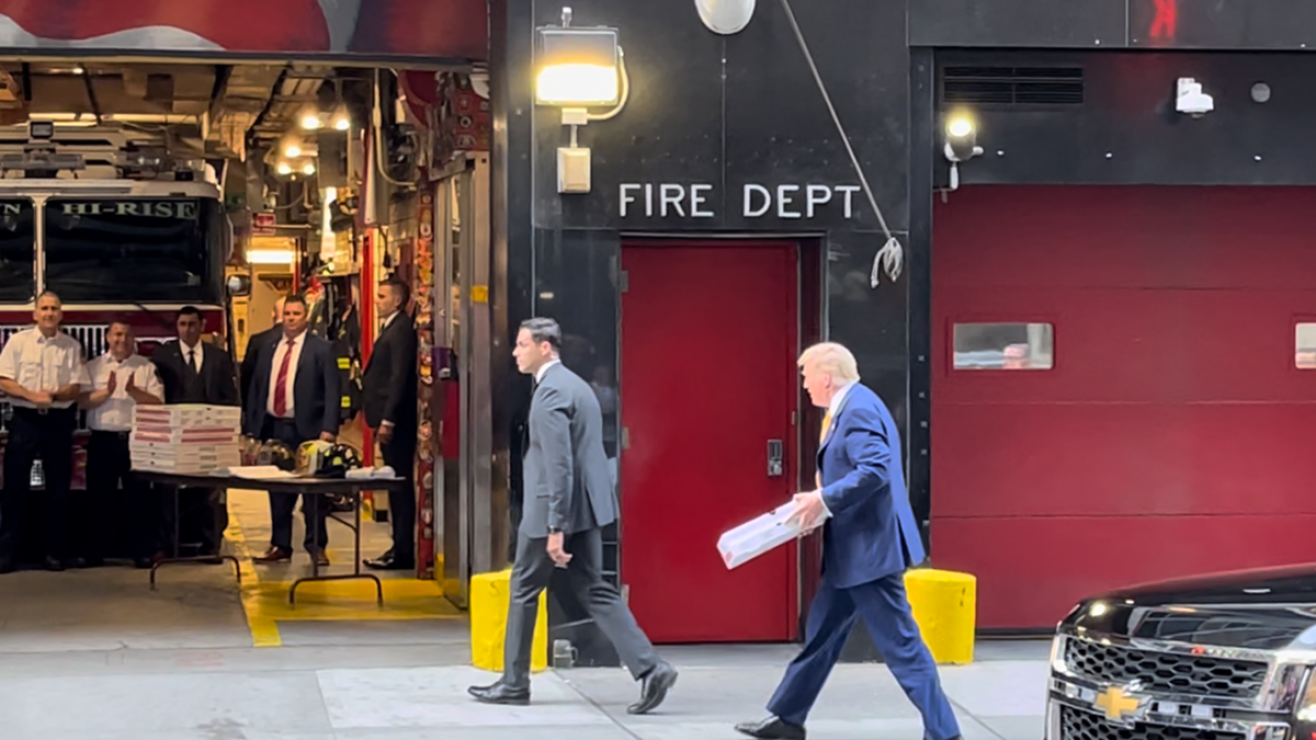 El expresidente Donald Trump hizo un nuevo acto de campaña en Nueva York, al entregar pizzas a bomberos, con quienes se tomó fotografías y les firmó algunas gorras.