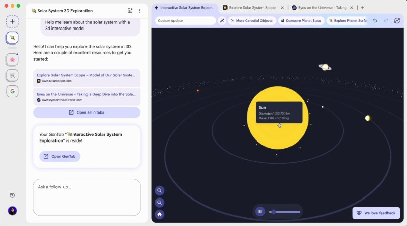 Por ejemplo, si un usuario está investigando sobre los planetas del sistema solar, Gemini 3 puede: