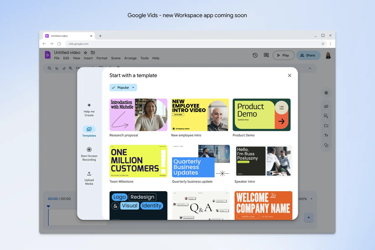 Hola, Google Vids. Otra de las novedades destacadas es Vids, una herramienta que se une a la oferta de aplicaciones en la nube de Google Workspace. Estamos ante un editor de vídeo que está pensado para entornos empresariales, y que permite producir rápidamente vídeos que luego compartir en el trabajo. En Google lo conciben como una alternativa a las presentaciones de Powerpoint, pero aquí la empresa ofrece además la potencia de Gemini AI para que sea la inteligencia artificial la que cree un primer borrador del vídeo sobre el que trabajar. Puede crear un storyboard, un gruión, lo puede leer en alto o puede crear imágenes para usarlas en el vídeo. Para los responsables de la creación, la idea es trabajar como lo haríamos con una hoja de cálculo o un procesador de textos.