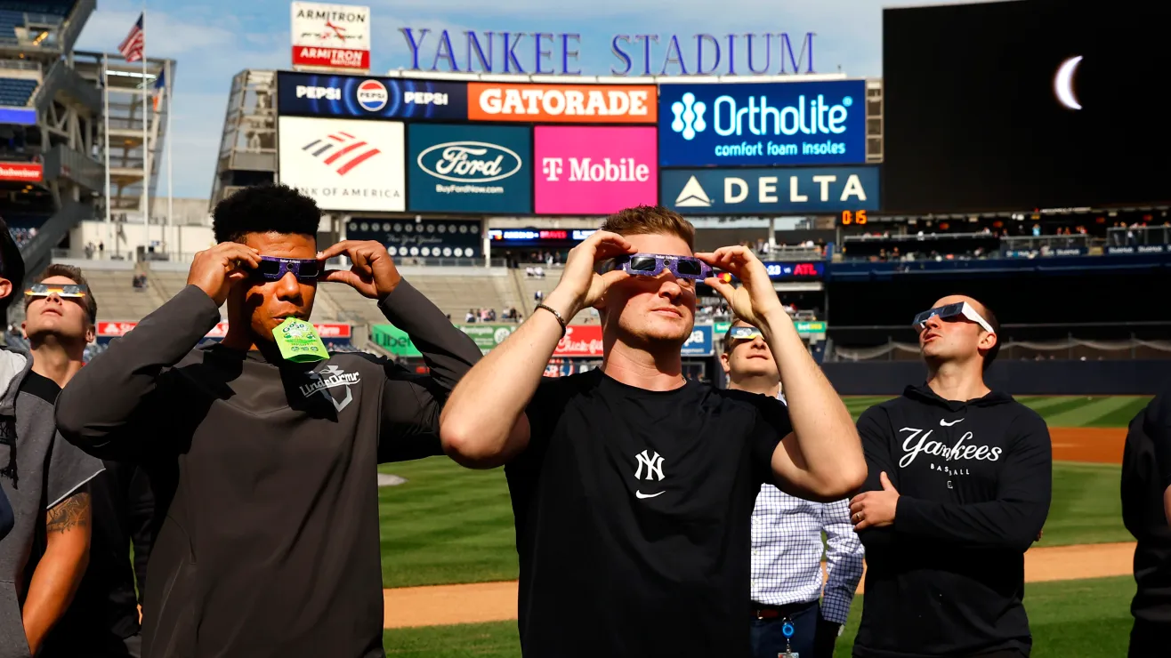 La expectativa que generó el eclipse solar de este 8 de abril no solo se vivió en personas comunes y corrientes, sino que también lo disfrutaron los jugadores y fanáticos que se presentaron de manera anticipada en el Yankee Stadium de la ciudad de Nueva York.