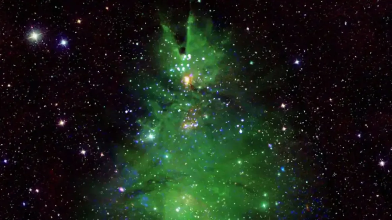La imagen realza el parecido con un árbol de Navidad mediante elecciones de color y rotación de la propia imagen, sostiene la NASA.