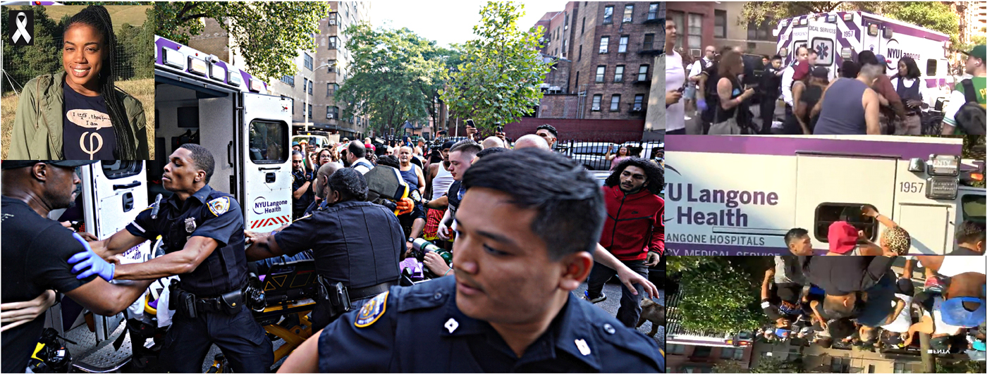 El caos se apoderó de la escena cuando familiares y vecinos de la víctima vieron que los policías y sacaban a Irish de un edificio en el sector Kips Bay del Bajo Manhattan e incluso la turba trató de entrar a la ambulancia del hospital NYU Langone Health de la Universidad de Nueva York.