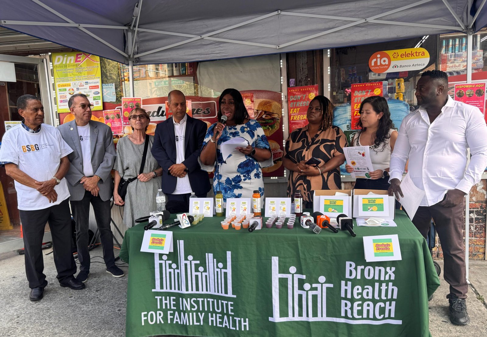 La presidenta del condado del Bronx, Vanessa L. Gibson, acompañó la presentación de las Opciones Saludables de Otoño 2025, que incluyen jugos naturales, refrigerios energizantes y comidas para llevar. “Esto es un ejemplo de lo que se logra cuando líderes comunitarios, instituciones de salud y comerciantes se unen por el bienestar colectivo”, expresó.