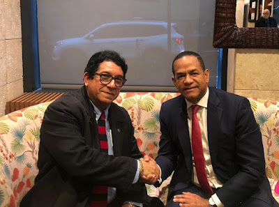 NUEVA YORK.-El ex presidente de la Cámara de Diputados de la República Dominicana, licenciado Julio César Valentín, quien se encuentra de visita en esta ciudad de Nueva York, sostuvo un encuentro con el otrora dirigente reformista Juan Alberto Núñez, quien ahora junto al presidente del Partido Justicia Social realizan activismo político en favor de la reelección del presidente Luis Abinader Corona, candidato presidencial del Partido Revolucionario Moderno (PRM).