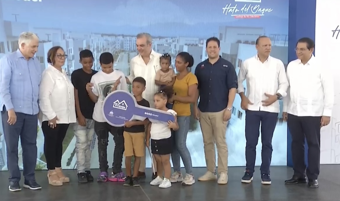 El presidente Luis Abinader entregó este sábado 250 apartamentos a personas desplazadas de la ribera de la cañada de Gurabo e inauguró un conjunto de obras que beneficiarán a miles de personas de esta ciudad.