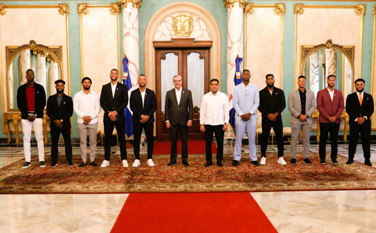 El presidente Luis Abinader recibió en el Salón de Embajadores del Palacio Nacional al equipo dominicano de béisbol que representará a la República Dominicana en la competencia Premier 12, que se celebrará en China Taipei, México y Japón del 9 al 24 de noviembre de 2024. Durante este importante encuentro, el mandatario expresó su apoyo al equipo, recibiendo una camiseta del conjunto y augurándoles el mayor de los éxitos en la contienda internacional. El presidente Abinader estuvo acompañado por el ministro de Deportes, Kelvin Cruz, quien también mostró su respaldo al equipo nacional.