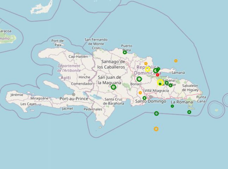 Asimismo, el sismo de mayor magnitud registrado este día en el país fue de 4.2, a 16.5 kilómetros al norte de Bayaguana, Monte Plata, a la 2:06 p. m.
