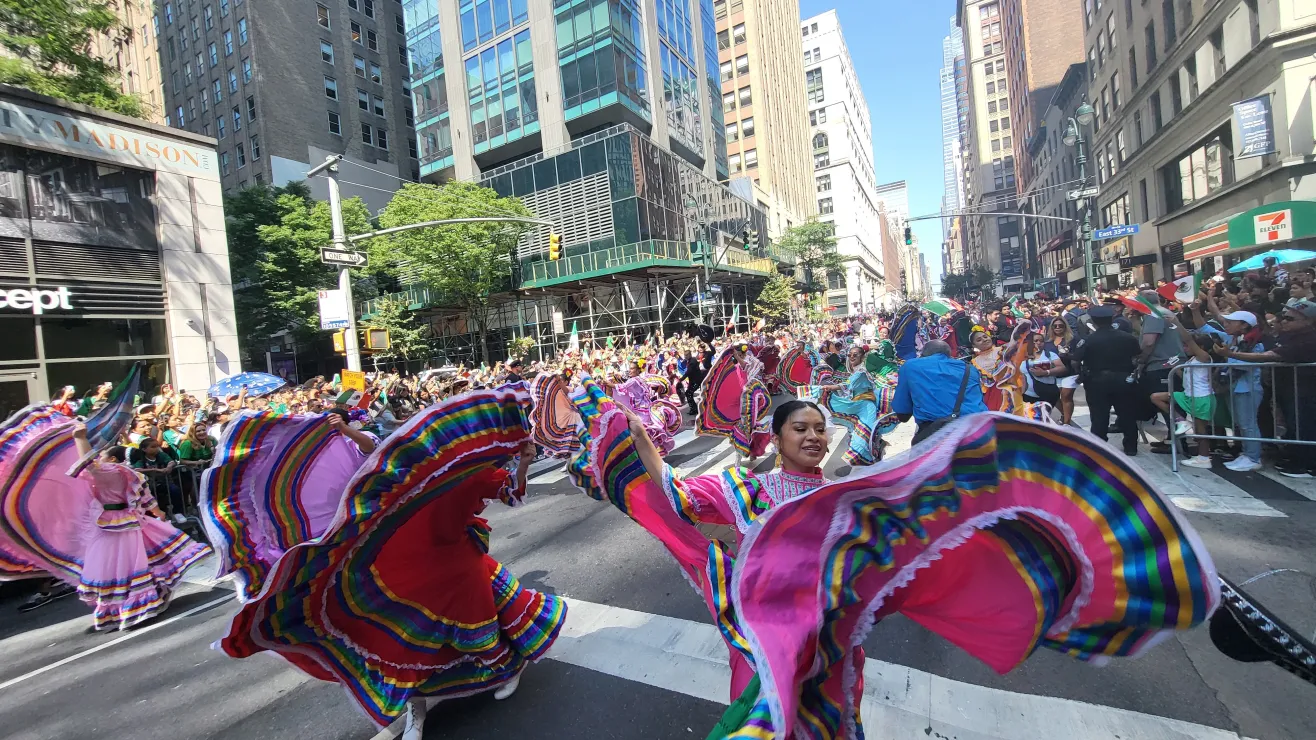 El desfile incluyó danzas folclóricas y la participación de carrozas representativas, como las del Ballet Folklórico Espíritu de México y otros grupos culturales. También se sumaron instituciones locales como la Cruz Roja, la Banda de Policía de Nueva York y hasta el equipo de fútbol New York City FC, quienes contribuyeron con el ambiente festivo junto al mariachi Tapatío de Álvaro Paulino.